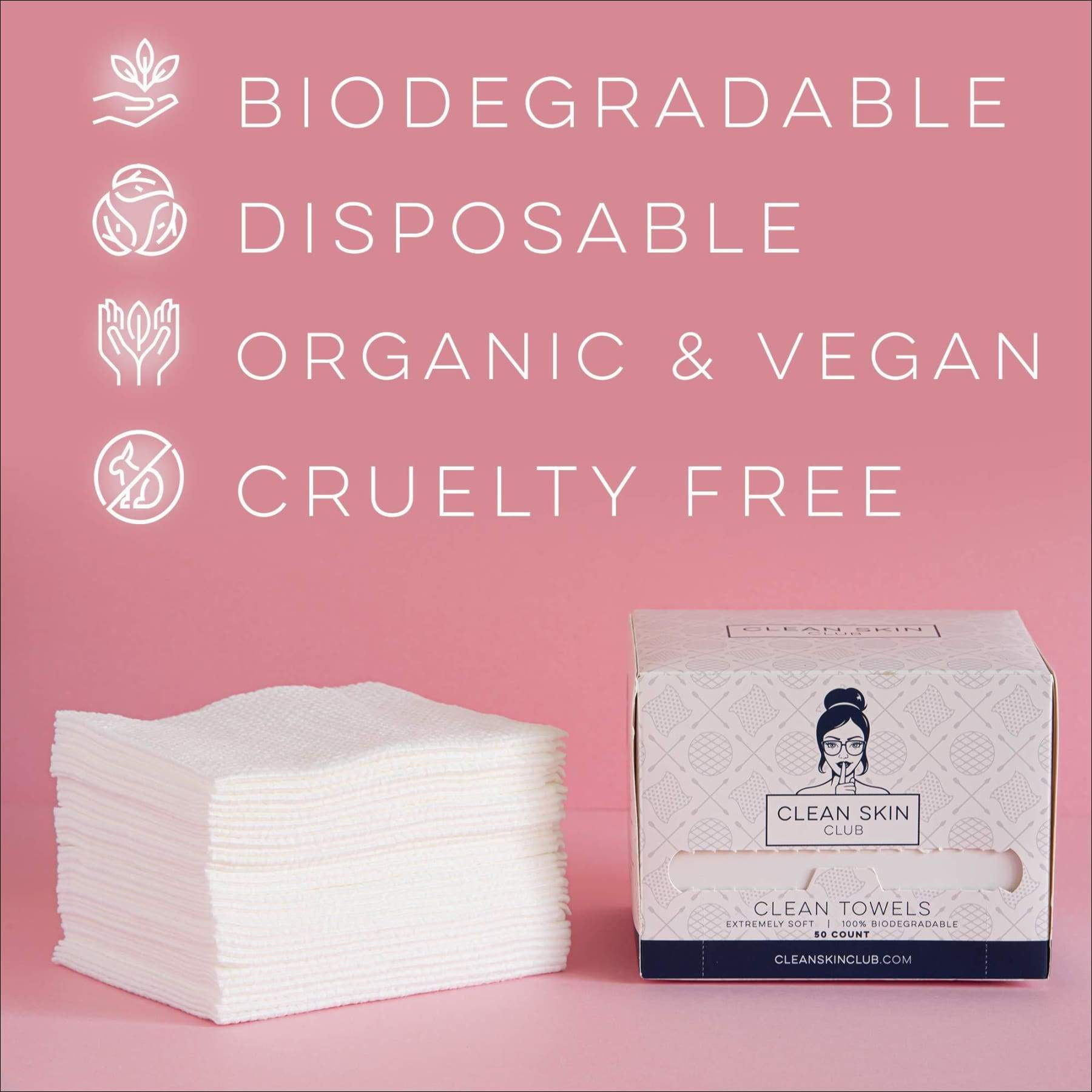 Clean Skin Club Clean Towels World S 1st Biodegradable Face Towel Disposable Makeup Removing Wipes 100 Organic Viscose 50 Ct Super Soft For Sensitive Skin Dry Cleanser Towel Walmart Com